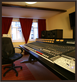 Das Studio verfügt über einen ca. 30qm großen Regieraum, der ein Maximum an Bewegungsfreiheit, Tageslicht und ein schönes Ambiente für Kreativität bietet. Alle angrenzenden Aufnahmeräume sind miteinander durch eine videokonferenztechnische Schaltung verbunden und über LCD Displays einsehbar. Die offene Architektur zwischen Mischpult, Outboard und instrumentarischem Equipment bietet eine unbegrenzte Vielzahl an klanglichen Möglichkeiten.
